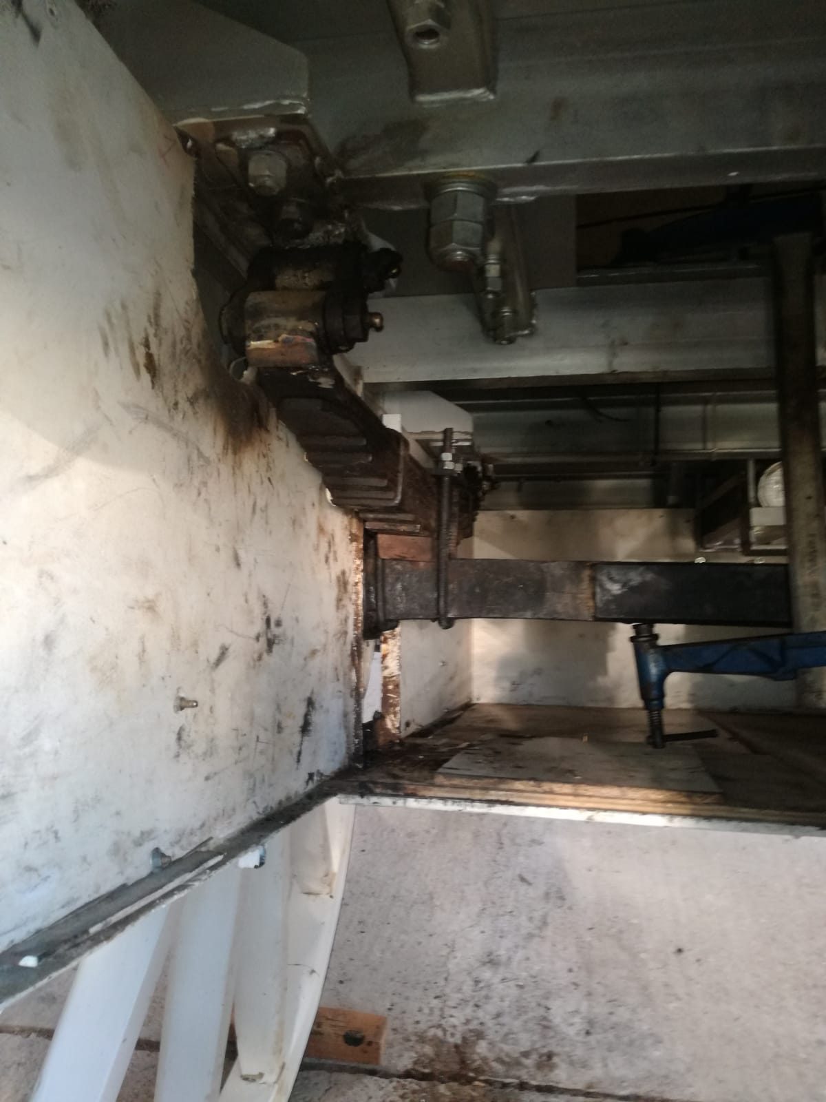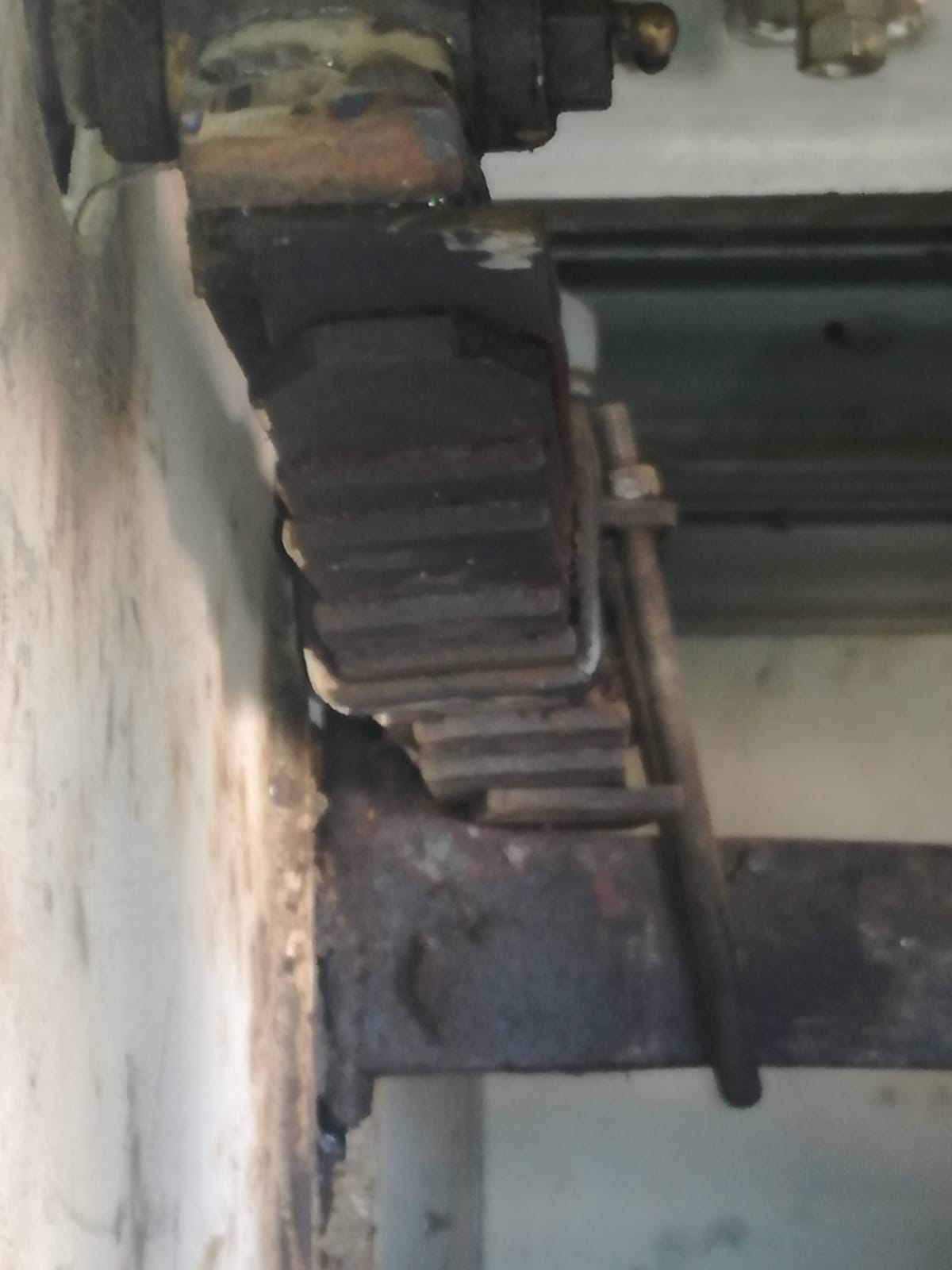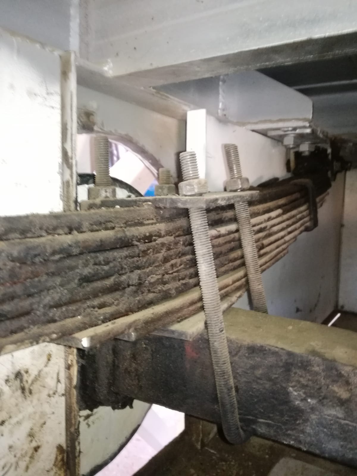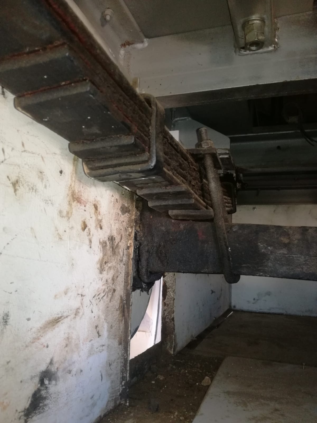 Al profundizar en la inspección de la Carreta, observamos varios desperfectos que urgían su reparación para garantizar la seguridad de la misma para la Romería 2019. Vimos que el muelle izquierdo estaba con los cabestrillos de cogida sin apretar, el tornillo central de cogida láminas roto, la lámina principal desoldada, el eje estaba desplazado hacia atrás y como consecuencia, chocaba con el cajón.