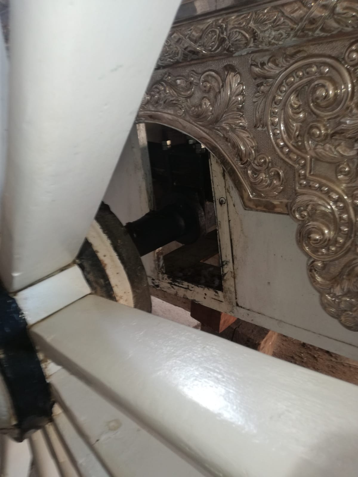 Les informo que después de la visita en su Casa Hermandad para ver el estado de las ruedas de la Carreta de Plata, se observó que varias de las piezas de la circunferencia exterior que fueron reforzadas hace 2 años, estaban rajadas.