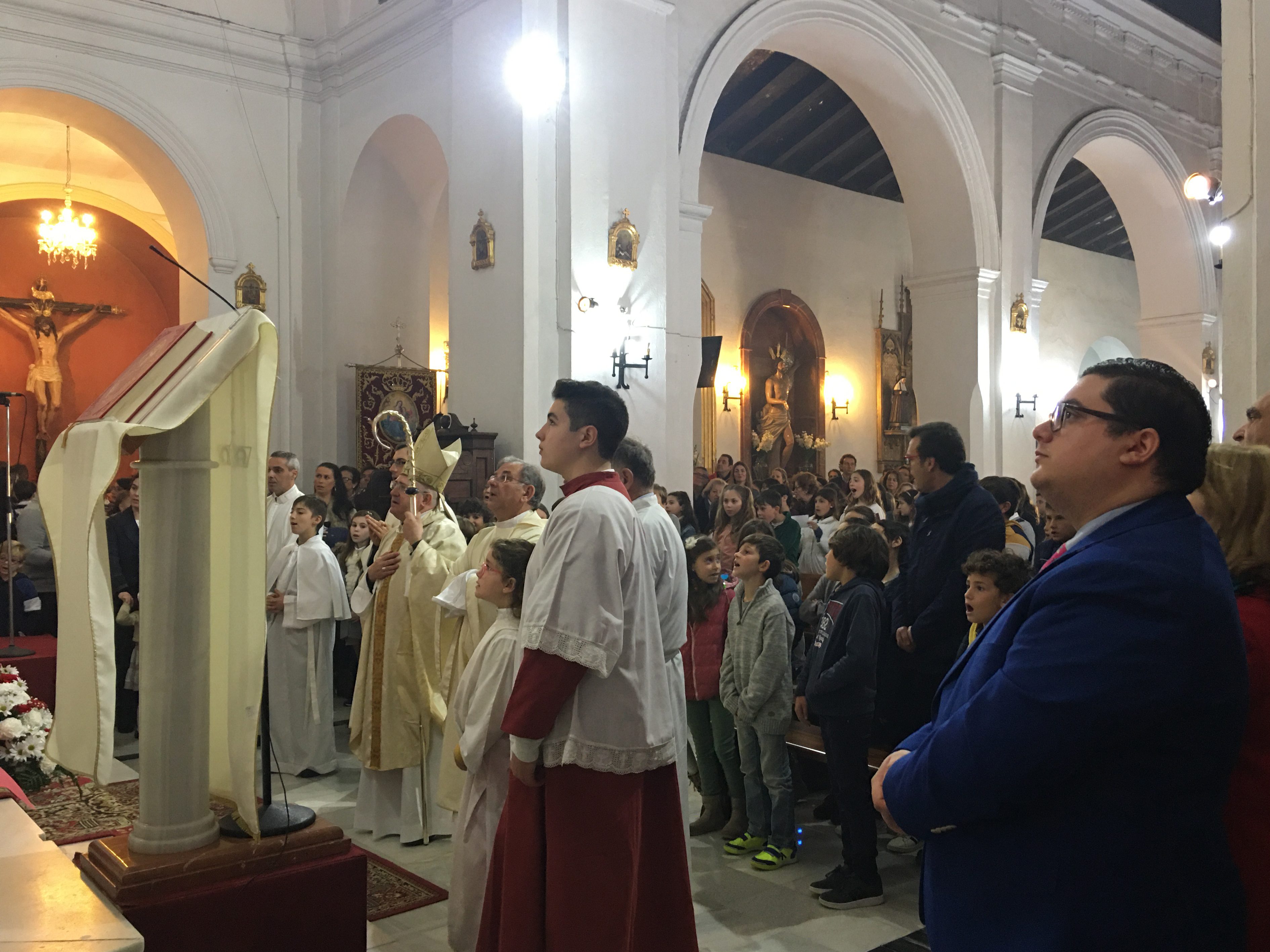Durante la pasada semana, la Parroquia de Ntra. Sra. de la Asunción de nuestro pueblo ha contado con la Visita Pastoral de Monseñor Santiago Gómez, obispo auxiliar de la Archidiócesis de Sevilla. Del 27 de enero al 2 de febrero, D. Santiago se ha convertido en uno más dentro de la rutina de todas las instituciones y vecinos de Espartinas, desde los más jóvenes a los más mayores.
