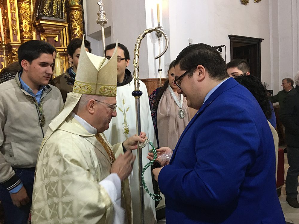 Pero el día más emotivo de la visita fue el viernes 31 de enero, sin duda. Primero, las tres juntas de gobierno de las hermandades del pueblo acudieron a un encuentro con D. Santiago en el salón parroquial. Allí se presentaron todos los miembros de cada una de ellas y el obispo auxiliar les expuso la importancia de que enseñen al resto de hermanos que tienen que vivir la fe de una forma verdadera, sin quedarse en lo superficial, tomándola en serio.