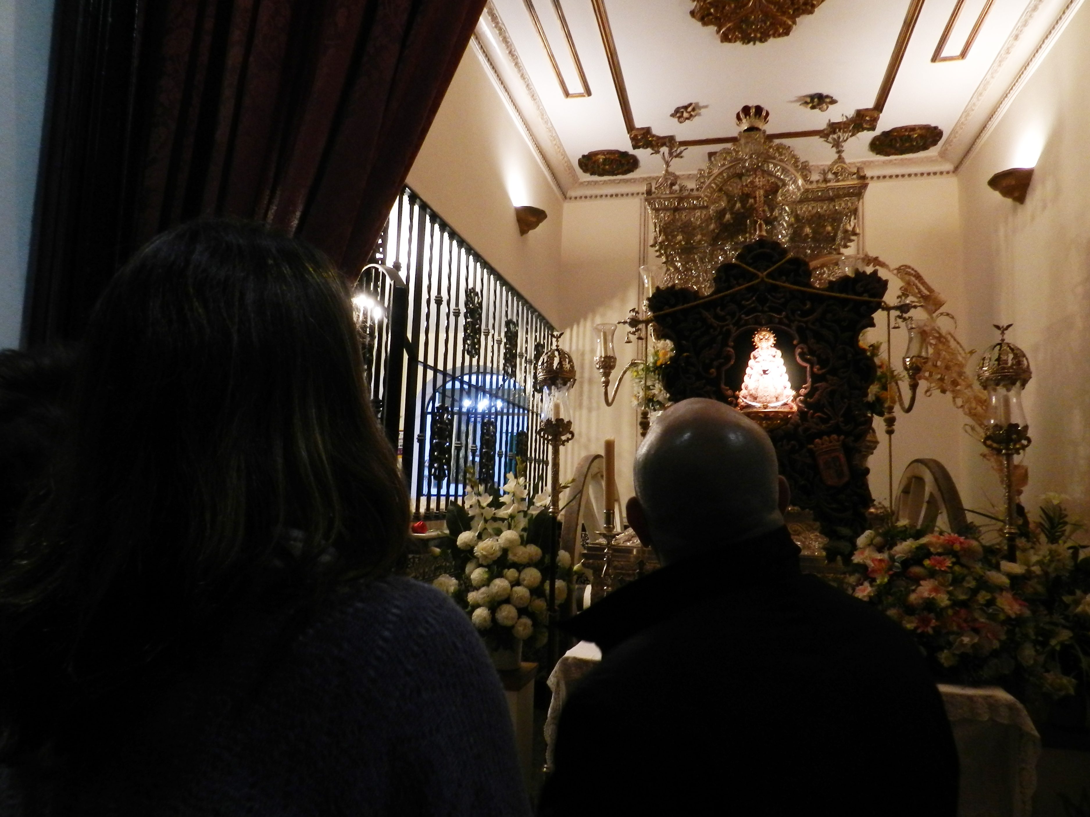 Luego, asistieron a una misa en la que también estuvo presente D. Antonio Vergara, vicario de zona. Y, finalmente, Monseñor Santiago visitó nuestra Casa de Hermandad. Contempló detenidamente el Simpecado, rezó ante él y se sorprendió con la trasera de la Carreta de Plata. También paseó por el salón de nuestra Casa de Hermandad y se detuvo mirando algunos de los cuadros allí expuestos.